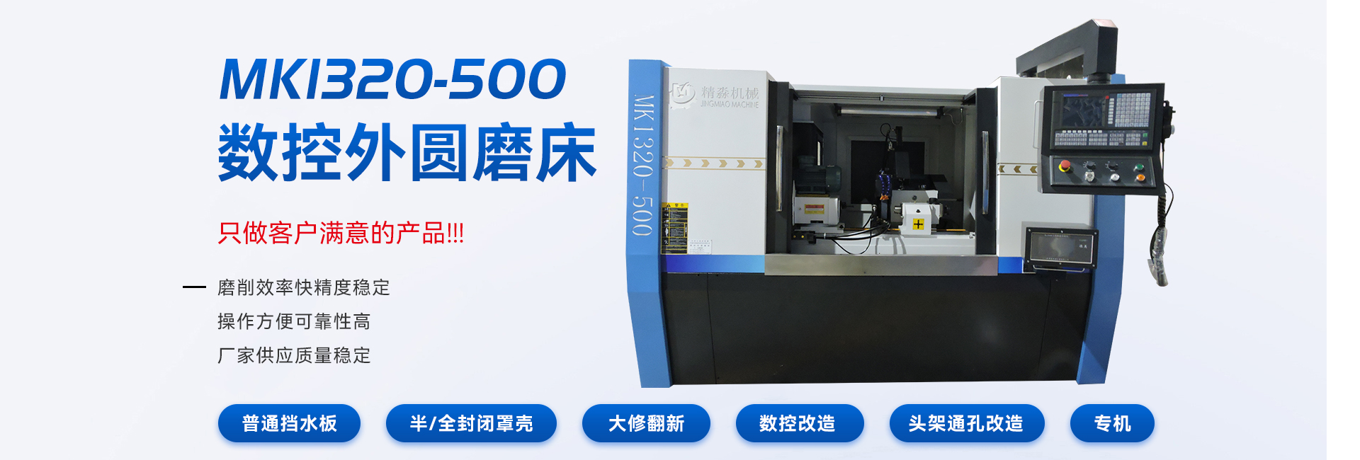 無錫市精淼機(jī)械科技有限公司是一家專業(yè)生產(chǎn)外圓磨床,無心磨床,內(nèi)圓磨床的整合型磨床生產(chǎn)廠家。公司坐落于"魚米之鄉(xiāng)";之稱的江蘇無錫,位于美麗富饒的長江金三角地區(qū)---江蘇省無錫市錫山區(qū),交通便利,環(huán)境優(yōu)美。 公司主要產(chǎn)品有:磨床,外圓磨床,萬能外圓磨床,數(shù)控外圓磨床,數(shù)控端面外圓磨床,高精度外圓磨床,無心磨床,內(nèi)圓磨床,功能部件等。產(chǎn)品廣泛應(yīng)用于航空、航天、軍工、汽車、船舶、能源、紡織、電子、軸承、冶金、機(jī)床工具、工程機(jī)械等行業(yè),在廣大用戶中享有盛譽(yù)。 無錫精淼機(jī)械科技有限公司一貫堅(jiān)持“以人為本、以科技求發(fā)展、以質(zhì)量爭(zhēng)市場(chǎng)、以品牌創(chuàng)效益”的方針,嚴(yán)格奉行“誠信、守信”經(jīng)營理念。多年來我們不懈努力,開拓市場(chǎng),始終堅(jiān)持“質(zhì)量**,誠信優(yōu)先,服務(wù)保障”的原則,以一流的產(chǎn)品和精心的服務(wù)來滿足顧客的期望,保證客戶得到滿意的產(chǎn)品。 我公司一直秉持這品質(zhì)卓越、服務(wù)一流的理念,熱誠歡迎國內(nèi)外新老用戶誠摯合作,光臨指導(dǎo),洽談業(yè)務(wù)。